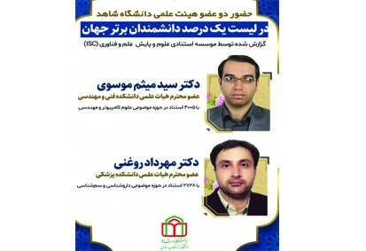 به گزارش روابط عمومی دانشگاه شاهد، مؤسسه استنادی و پایش علم و فناوری جهان اسلام (ISC)، دو پژوهشگر از پژوهشگران دانشگاه شاهد را در زمره پژوهشگران پراستناد یک درصد برتر جهان قرار داد.