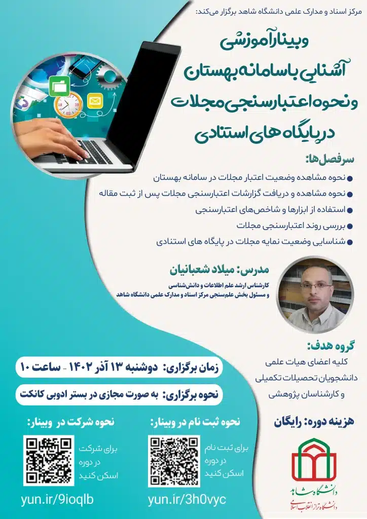وبینار آموزشی آشنایی با سامانه بهستان و نحوه اعتبارسنجی در پایگاههای استنادی