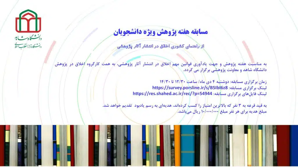 مسابقه هفته پژوهش ویژه دانشجویان از راهنمای کشوری اخلاق در انتشار آثار پژوهشی
