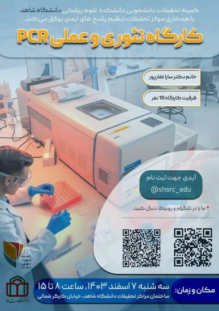 کمیته تحقیقات و فناوری دانشجویی دانشگاه شاهد برگزار میکند: 🧬 کارگاه آموزشی Real-Time PCRبا هدف آشنایی عملی و تئوریک با یکی از تکنیکهای کلیدی و پرکاربرد در تحقیقات مولکولی تاریخ…