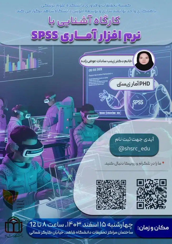 کمیته تحقیقات و فناوری دانشکده علوم پزشکی با همکاری واحد توانمندسازی و توسعه آموزش دانشگاه شاهد برگزار میکند:کارگاه آشنایی با نرم افزار آماری SPSSفرصتی طلایی برای یادگیری یکی از مهمترین…